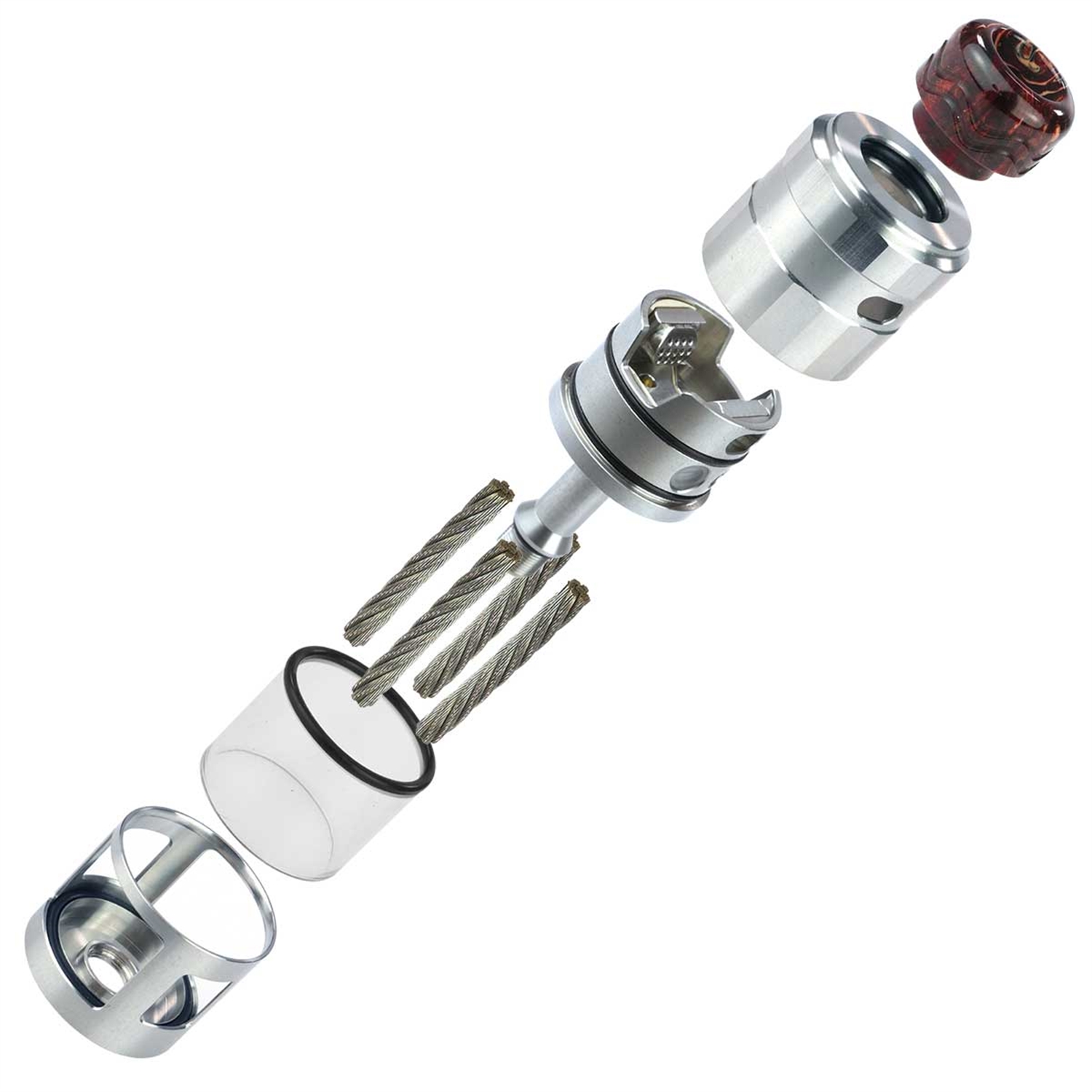 O Vandy Vape Mato DL RDTA é fabricado em aço inoxidável de alta qualidade com "vidro" PSU à prova de quebra, e possui um sistema de fluxo de ar de favo de mel ajustável com 13 furos de cada lado interior.