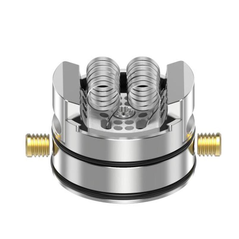 It's constructed of stainless steel &brass. THC Tauren Max RDA features unique Dual-Y-Shape deck to build dual coils easily. It has triple sides with 32 Holes for 3D honeycomb airflow. The Tauren Max RDA adopts side filling design and it's compatible with squonk mods by BF pins.